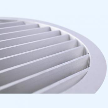 Серия РКМ. Решетки с горизонтальными наклонными жалюзи, защитной сеткой и фланцем, выполнены из алюминия. Применяются для наружного монтажа.