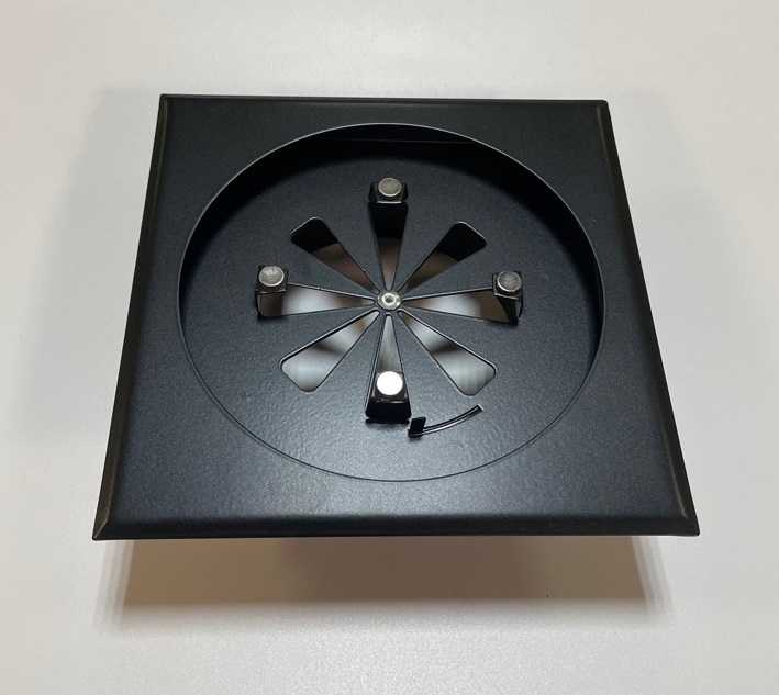 Благодаря магнитам, крепление получается невидимым что не портит внешний вид, и позволяет без труда снимать решетку для обслуживания системы.