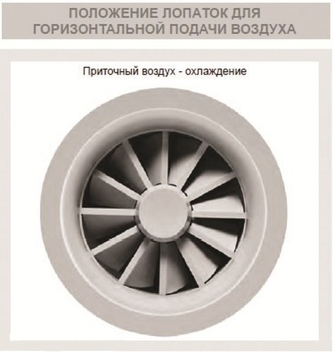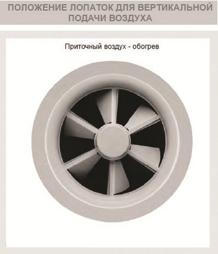 Примечание: Диффузоры идеально подходят для помещений с высокой разницей температуры между поступающим воздухом и воздухом в помещении. Положение лопаток диффузора можно изменять в зависимости от сезона таким образом, чтобы обеспечить в рабочей зоне максимально комфортную температуру вне зависимости от подачи теплого воздуха ( вертикальная струя) или холодного воздуха (горизонтальная струя).
