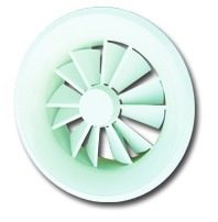 Внешняя панель диффузора включает в себя круглую панель со встроенным соплом, лопатки для воздухораздачи (регулируемые или неподвижные), закрывающие центр декоративного колпачка и соединительный патрубок. Положение лопаток может изменяться либо вручную, либо при помощи электропривода. Лопатки изготавливаются из стали или из алюминия и имеют специальную антивибрационную прокладку. Монтажное кольцо имеет фланцевое соединение.