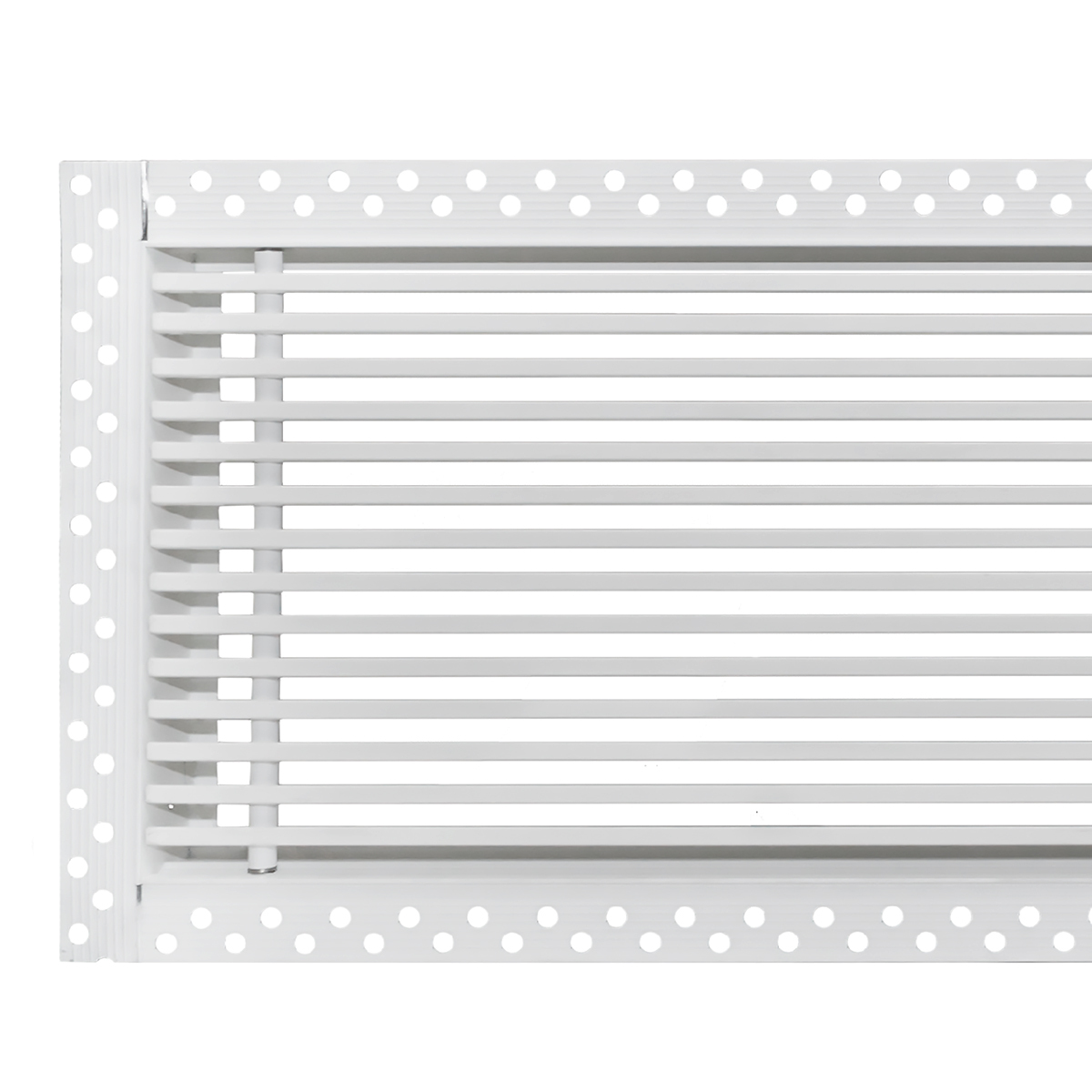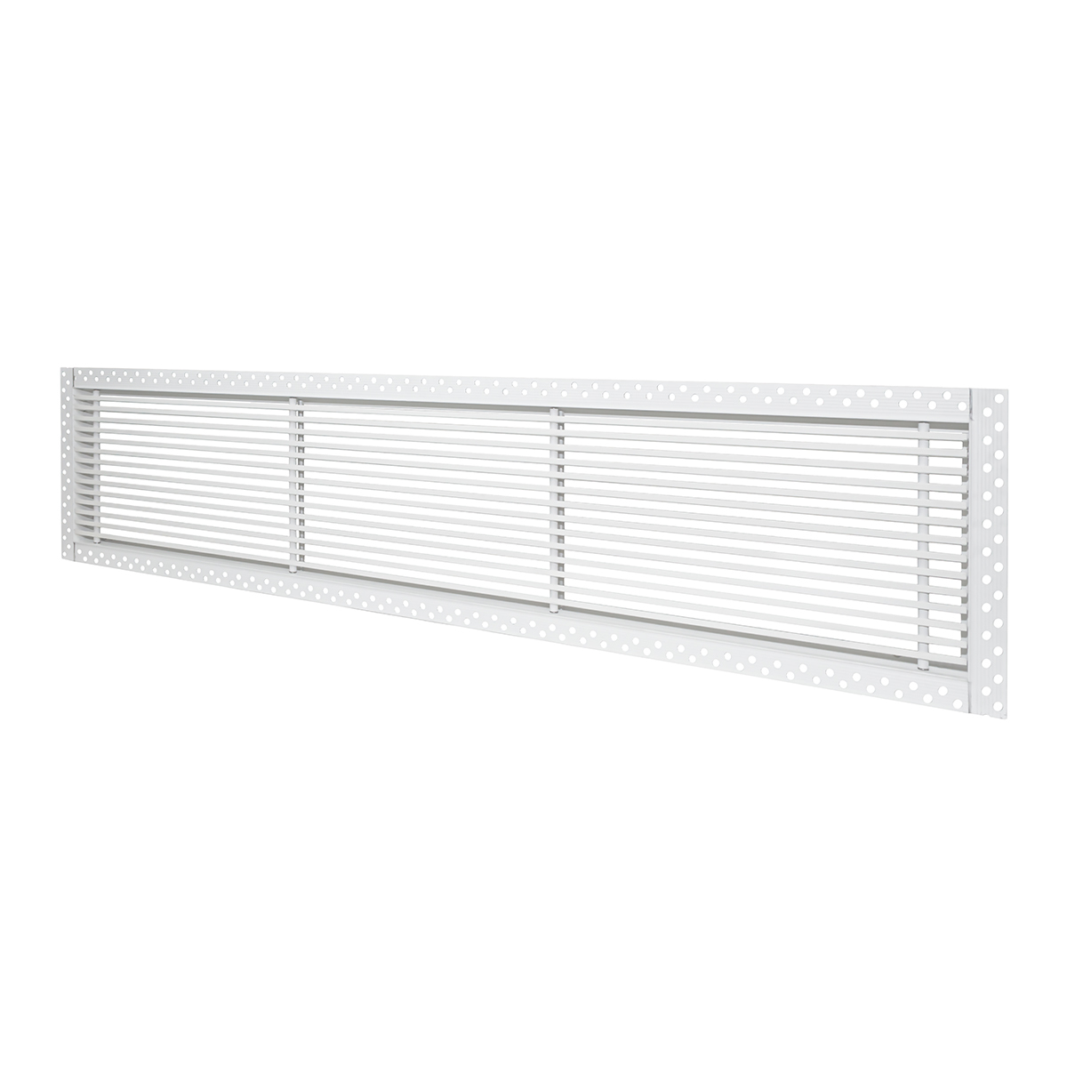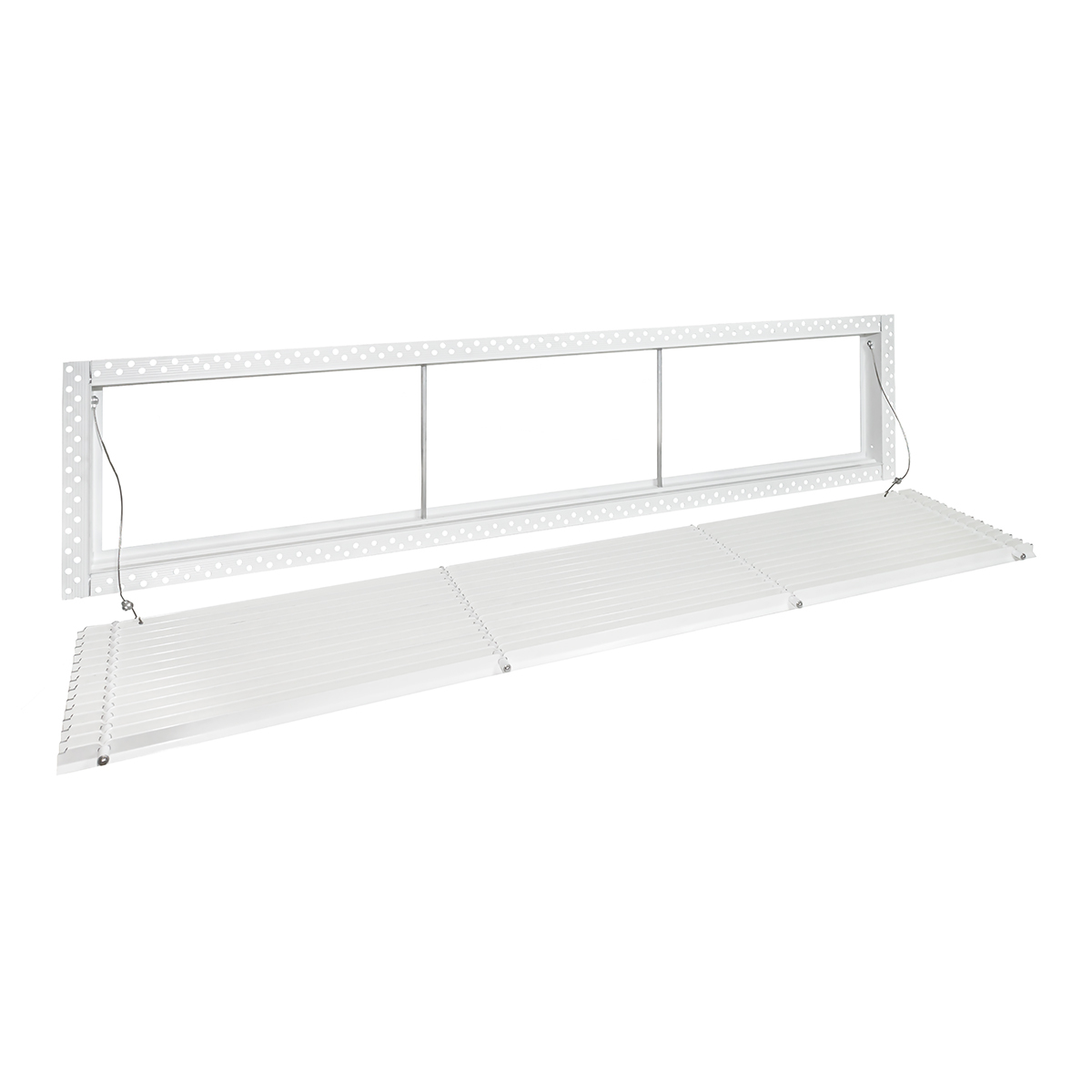 Данная решетка подходит для монтажа на любую поверхность под финишную отделку. Рамка и экран изготовлены из алюминия, опора экрана - из оцинкованной стали. Рама оснащена «полкой» 1,9 мм и рифлеными краями для большей адгезии финишного материала – шпатлевки, цемента. Решетка имеет съемную центральную часть с фиксированным углом наклона ламелей 15°. Она крепится к корпусу прочными металлическими тросиками, легко снимается для очистки и удобного обслуживания.