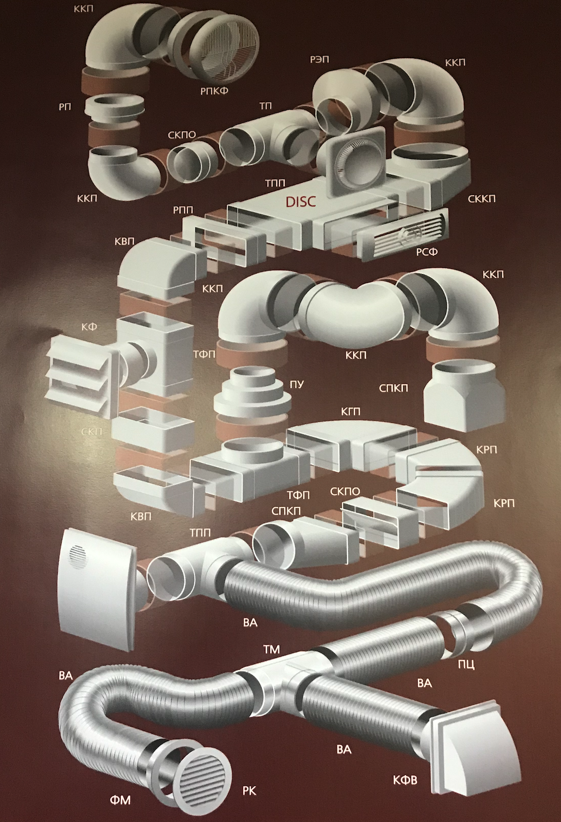 Колена круглые. Монтируются с круглыми воздуховодами.