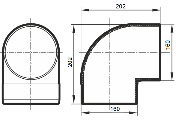 | Тип: | Круглое сечение (диаметр 160 мм), Колено |