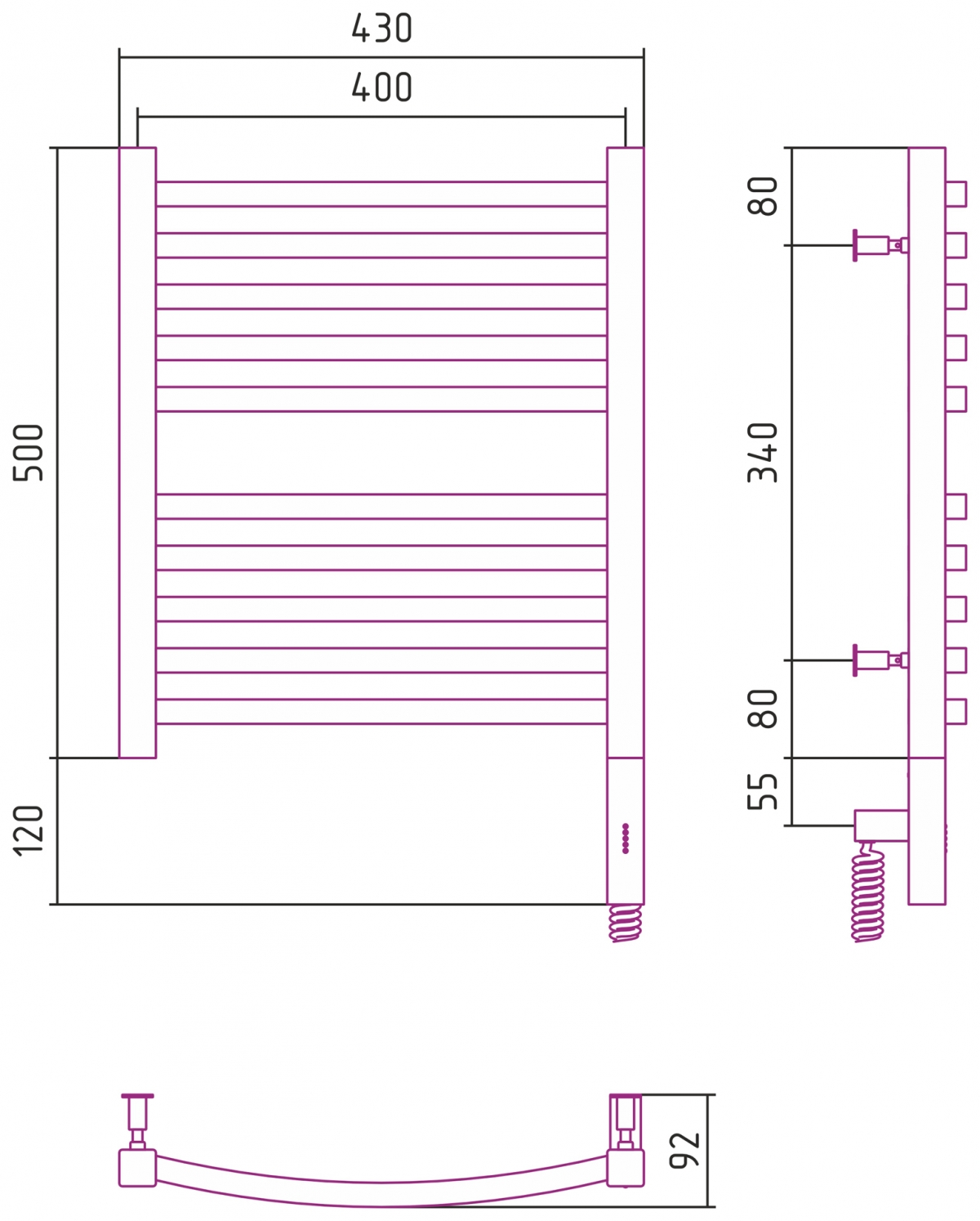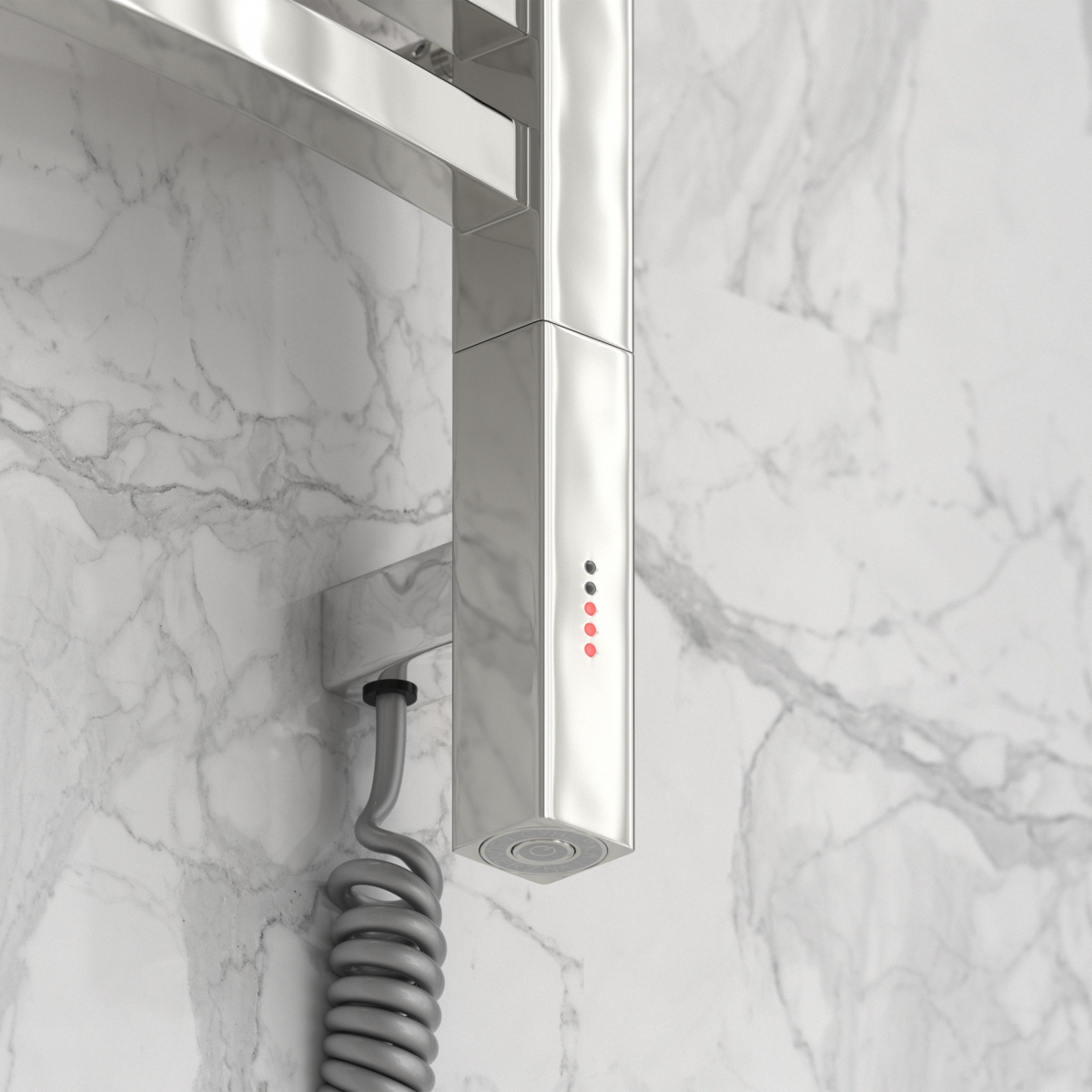 Блок управления МЭМ Сунержа® выполнен в едином стиле с полотенцесушителем и визуально является продолжением коллектора. В зависимости от выбранной модификации МЭМ может быть расположен справа или слева. В стандартной комплектации – кабель длиной 1,5 м и модуль для скрытого подключения полотенцесушителя.