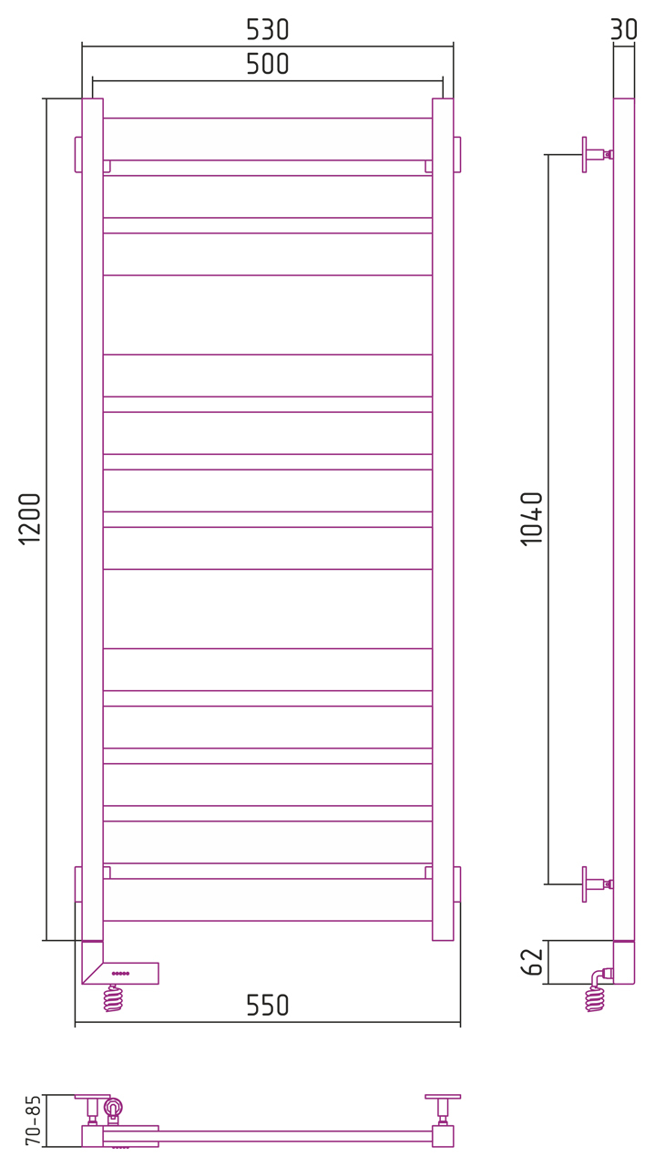 Внешние габариты (высота х ширина х глубина)(мм) : 1262x550x70-85