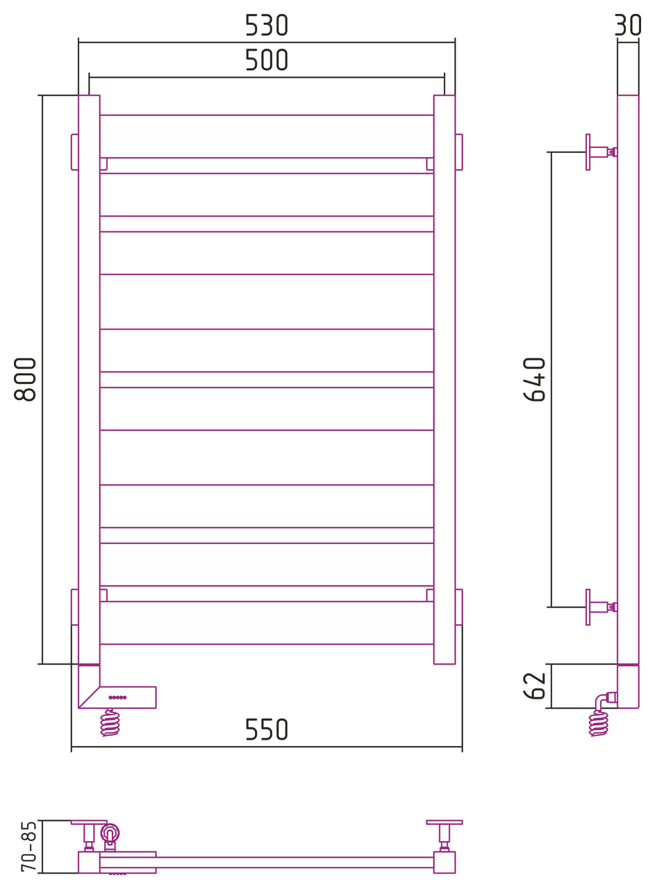 Полотенцесушитель электрический Сунержа Центурион 2.0 800x500