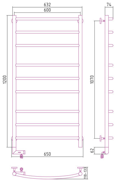 Полотенцесушитель электрический Сунержа Галант 2.0 1200x600