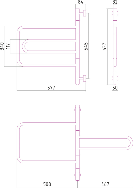 Внешние габариты (высота х ширина х глубина)(мм) : 637 х 50-975 х 84-577