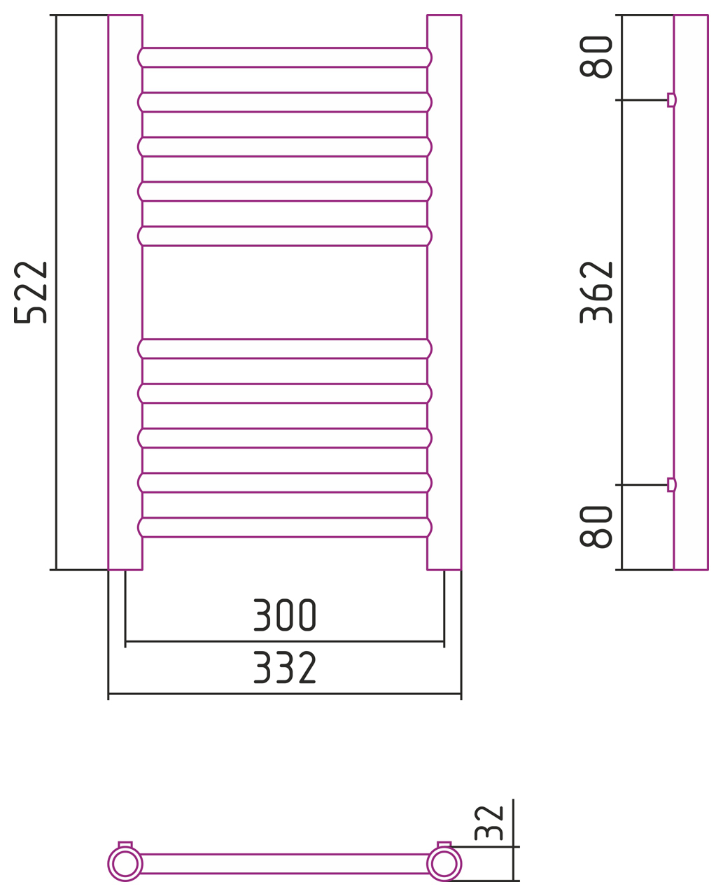 Размер полотенцесушителя:600x300
