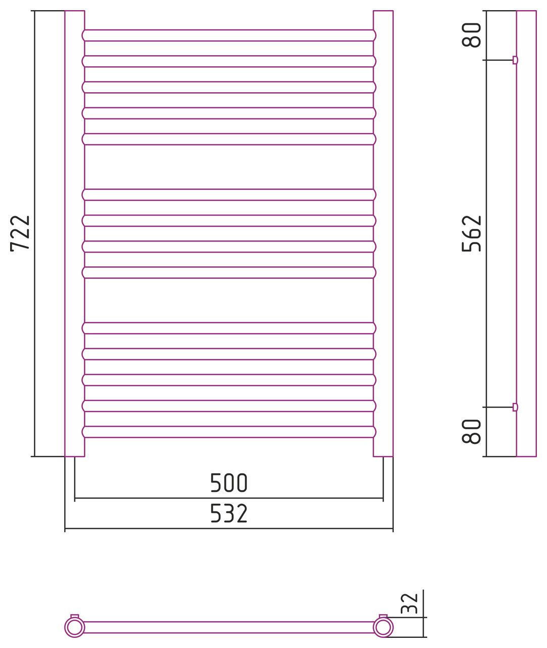 Полотенцесушитель комбинированный Сунержа Богема-ПРОФИ прямой 800x500. 00-5102-8050