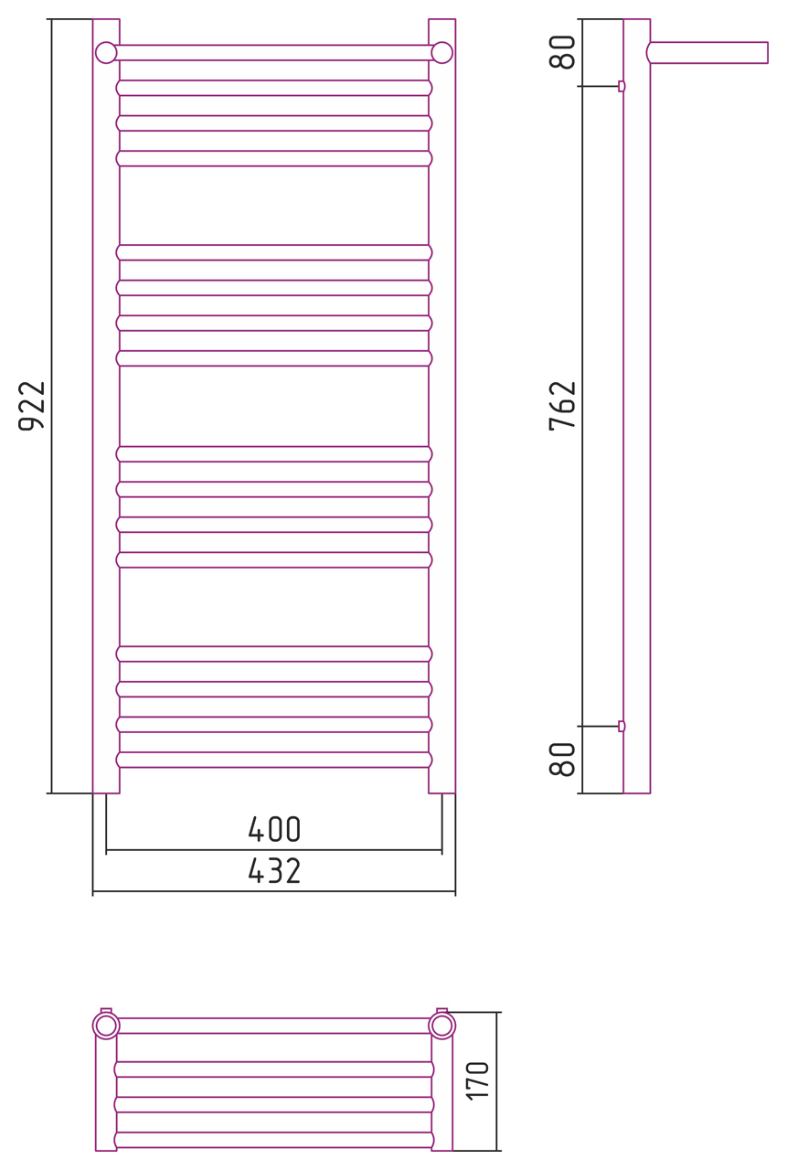 Тип:Богема с 1 полкой, Полотенцесушитель