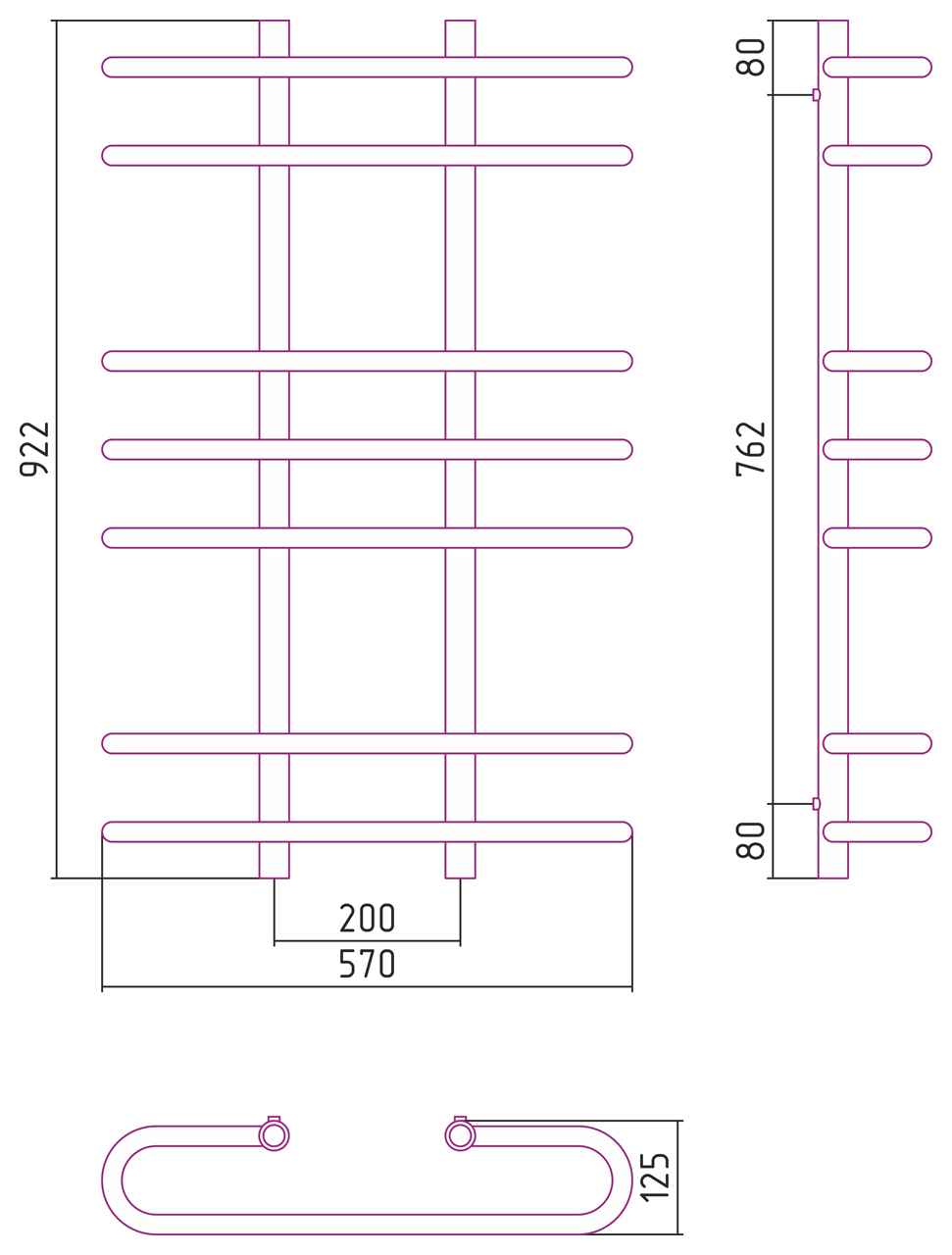 Полотенцесушитель комбинированный Сунержа Фурор-ПРОФИ 1000x600. 00-5106-1060