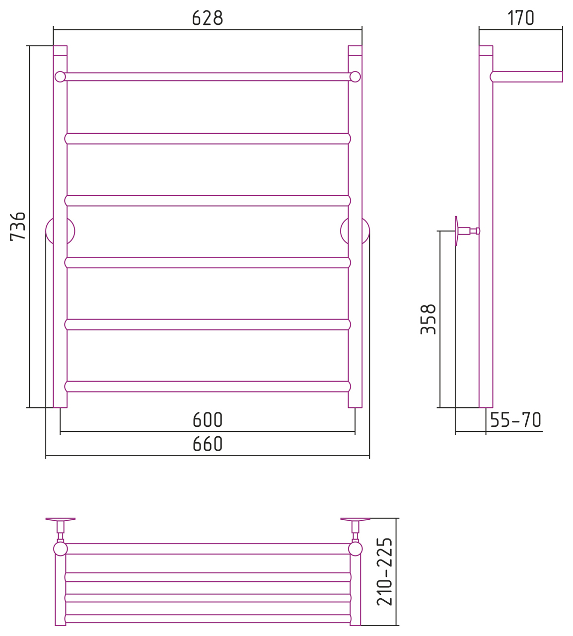 Полотенцесушитель водяной Стилье Универсал-54 800x600