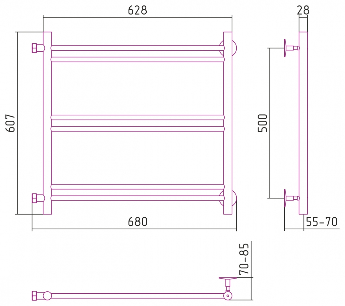 Полотенцесушитель водяной Стилье Универсал-50 600x400