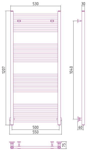 Внешние габариты (высота х ширина х глубина) (мм) : 1207 х 550 х 75