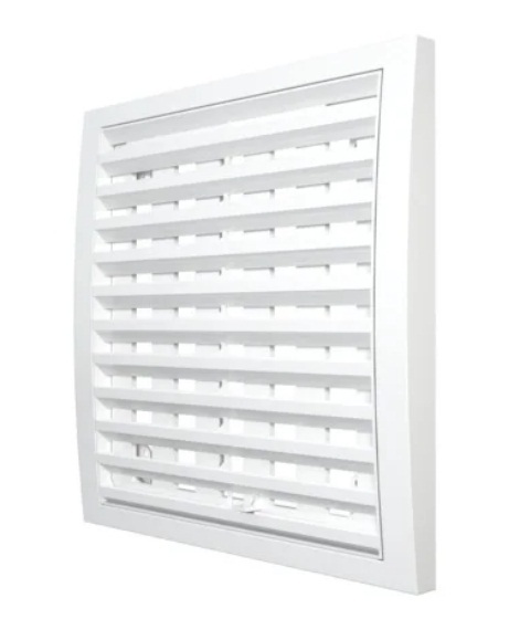 Решетка вентиляционная с наклонными фиксированными жалюзи, или динамичными жалюзи для модификации «РРП», предназначена для естественной вентиляции.