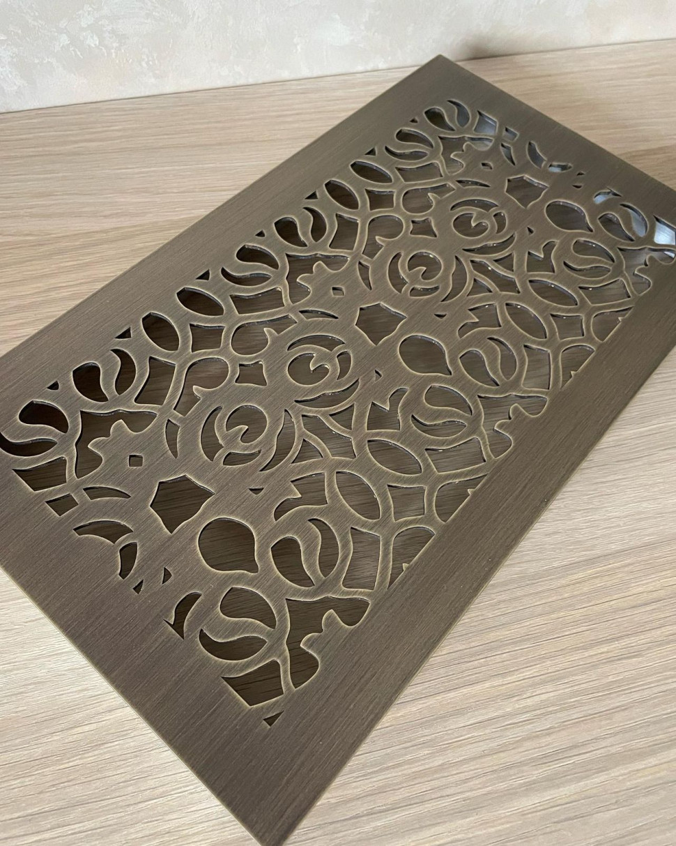 - Рисунок на решетки производится путем лазерной резки с ручной доработкой. Возможно изготовление любого рисунка, любого размера и формы по Вашим эскизам.
