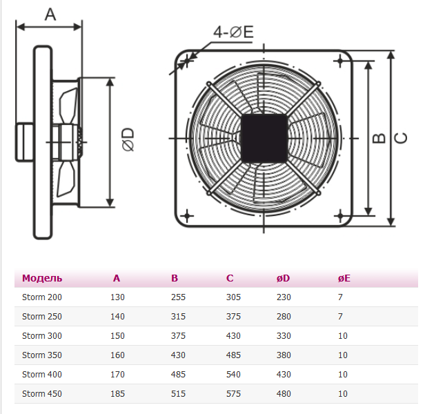 Осевой вентилятор STORM 350 обладает низким уровнем давления.